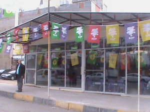 ANTEP-BDP Nizip İlçe Örgütü'nün merkezi seçim bürosuna dün gece kimliği belirsiz kişi yada kişiler tarafından taşlı saldırı gerçekleştirildi. Saldırıda seçim bürosunun birçok camının kırıldığını aktaran BDP Nizip İlçe Örgütü yöneticisi Erkan Şahin, o sırada çevrede bulunan yurttaşların polise haber vermesi üzerine polislerin kendilerini arayarak, olay yerinde incelemeler yaptığını söyledi. O çevrede seçim bürosunu net bir şekilde gören mobese kameralarının olduğunu belirten Şahin, "Mobese kameraları var. Kim olduklarını rahatlıkla tespit edebilirsiniz" dedikleri polislerden "Motosikletli 4-5 genç bunu yapıyor. Hızlı bir şekilde gelip taşlarla saldırıyorlar çok geçmeden olay yerinden uzaklaşıyorlar. Görüntüler çok karanlık olduğu için tespit etmekte zorlanıyoruz. Bu konudaki incelemelerimiz devam ediyor" cevabı aldıklarını kaydetti.
