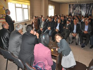 Muş- Bulanık ilçesinde BDP İlçe Örgütü tarafından parti binasında halk toplantısı gerçekleştirildi. Toplantıya HDP Muş Milletvekili Demir Çelik, BDP PM üyesi Hüseyin Altun, BDP Muş İl Başkanı Naif Erol, BDP Bulanık İlçe Eş başkanları Kevser Topcu ve Mesna Kardağı, Bulanık Belediye Eş Başkanı Figen Yaşar, belde belediye başkanları ile yüzlerce yurttaş katıldı. 30 Mart yerel seçimlerin artısı-eksisiyle değerlendirildiği toplantıda, son günlerde yaşanan siyasi gelişmeler ele alındı. Demokrasi ve özgürlük mücadelesinde yaşamını yitirenler anısına saygı duruşunda bulunulmasının ardından konuşan BDP PM üyesi Hüseyin Altun, Kürt halk siyasetinin değişen ve gelişen yeni bir dönemde halkların birlikteliği adına önemli adımlar atarak, barışa bir adım daha yaklaşıldığını ifade etti. HDP Muş Milletvekili Çelik ise 30 Mart yerel seçimlerini geride bırakarak yeniden yapılanmaya karar kılınan "Haziran hamlesi"ne yoğunlaşmak gerektiğini belirterek, "Artık önümüze bakmak zorundayız. Stratejik olarak hareketimiz yeni bir planlamaya kendini tabi tutmuştur" dedi ve BDP'nin HDP'ye katılma kararı ile yeni dönem politikalarını anlattı. Çelik, "Yeniden gidilecek yapılanmanın ardından Cumhurbaşkanlığı seçimi var. Bu seçimde çabamız tüm mağdurların, tüm emekçilerin benim adayımdır dediği 3'üncü seçeneği halkın karşısına çıkarmak. Onun üzerinden demokratik özerklikten ne anladığımızın farkına varmak 30 Mart'ta başaramadığımızı 10 Ağustos 2014'te yüzde 10 barajını zorlayarak Kürt Halk Önderliği'nin özgürlüğüne kavuşmasını sağlamak. Kürdistan özgürlük hareketini demokratik siyasetin öznesi durumuna getirmek ve Kürt statüsünün demokratik özerk Kürdistan olarak tescilini sağlayacak başarıyı elde etmek zorundayız. Bu saatten sonra yeniden yapılanmaya karar aldığımız Haziran hamlesine yoğunlaşmak durumundayız" diye konuştu.