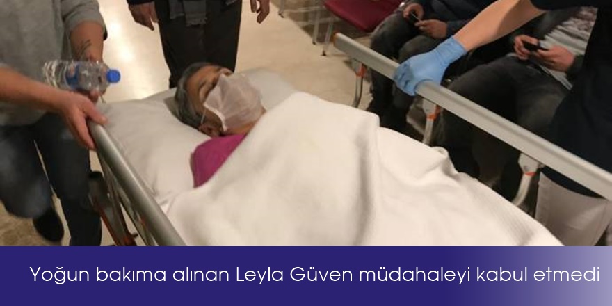 Bilinci açık olan Leyla Güven, tıbbi müdahaleyi kabul etmedi. Yoğun bakıma alınan Güven’in kalp ritmi takip ediliyor.