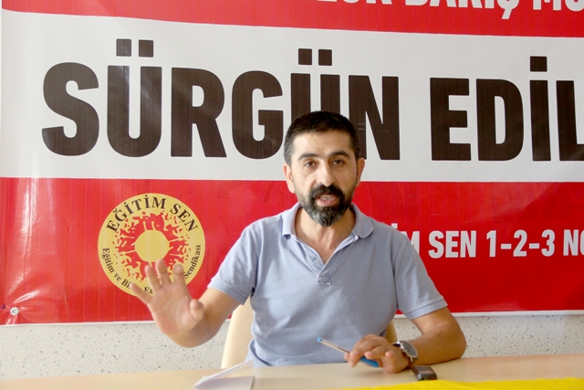 Geçen yıl da yine bu zamanlarda 4 bin 500 arkadaşımız açığa alınmıştı. Dolayısıyla geçen yılki eğitim öğretim yılı alt üst edildi. Bütün bir yıl boyunca kimse motive olamadı. Bu sene de aynı şekilde tam da eğitim öğretim döneminin başlayacağı bir zamanda sürgünler yaşandı. Diyarbakır’daki bütün okullarda arkadaşlarımız sürgün edildi. Bu sürgünler giden arkadaşlarımızın üzerinde de kalan arkadaşlarımızın üzerinde de çok büyük bir sıkıntı yarattı, moral motivasyon düşüklüğüne neden oldu. İnsanlar birbirlerine şöyle bakıyorlar; benim arkadaşım gitti ve her an ben de gidebilirim. Herkes birbirine artık şüpheyle bakmaya başladı, acaba beni kim ihbar etti. Şuan eğitimcilerin hepsi de tedirgin durumda. Sürgün olan 264 kişiden bizden istifa eden birkaç kişi dışında herkes Eğitim-Sen üyesidir.