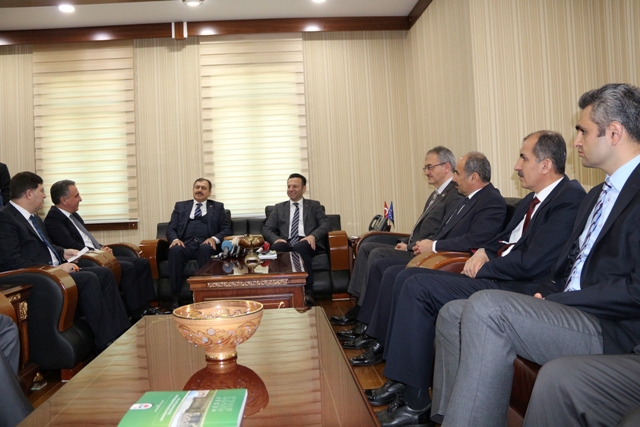 Orman ve Su İşleri Bakanı Veysel Eroğlu Diyarbakır’da. Dün sabah Diyarbakır Valisi Hüseyin Aksoy'u makamında ziyaret eden Orman ve Su İşleri Bakanı Veysel Eroğlu, Diyarbakır’a ve bölgeye yaptığı yatırımlarla ilgili bir basın toplantısı düzenledi. Orman ve Su İşleri Bakanı Veysel Eroğlu’nun, DSİ, Ormancılık, Meteoroloji, Doğa Korum Milli Parklar, Çölleşmeyle Mücadele Genel müdürlerinin ve AK Parti Diyarbakır İl Başkanı Muhammet Kurt’un bulunduğu heyet ile yaptığı Valilik ziyaretinin ardından Valilik toplantı salonunda bir basın açıklaması yaptı. Diyarbakır’a müjdelerle geldiğini ve heybesinin dolu olduğunu söyleyen Orman ve Su İşleri Bakanı Veysel Eroğlu, Bölge müdürleriyle bir koordinasyon toplantısı yapacaklarını ve Diyarbakır’da fırtına gibi eseceklerini söyledi.