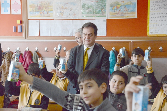 Okul yetkilileriyle bir süre görüşen İl Milli Eğitim Müdürü Adnan HURATA ve beraberindekiler, daha sonra sınıfa geçip öğrencilere süt dağıttı ve öğrencilerle bir süre sohbet etti.