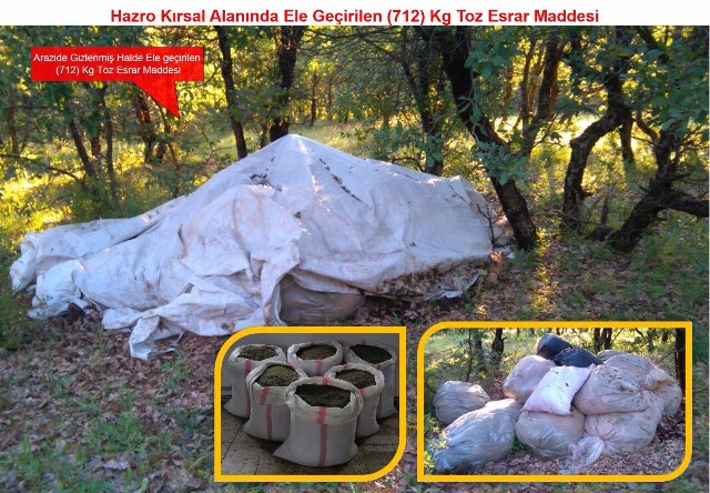 Diyarbakır Valiliği tarafından yapılan açıklamada ele geçirilen uyuşturucunun Cumhuriyet Başsavcılığı talimatıyla muhafazaya alındığı belirtildi. Açıklamada, "Diyarbakır İl Jandarma Komutanlığınca; elde edilen istihbari bilgiye istinaden Lice ve Hazro ilçeleri kırsal alanında bölücü terör örgütünün finans kaynağı olan imal edilmiş yasa dışı uyuşturucu maddeleri ele geçirmek maksadıyla, 25-26 Mayıs 2017 tarihlerinde operasyonel faaliyet icra edilmiştir. İcra edilen faaliyet kapsamında; Hazro ilçesi Ormankaya ile Çitlibahçe köyleri arasında bulunan Mindiro Tepe mevkiinde araziye gizlenmiş vaziyette 712 kilogram toz esrar maddesi, Lice ilçesi Kabakaya köyü Kaşderesi mevkiinde araziye gizlenmiş vaziyette 3 ton 400 kilogram toz, 350 kilogram kubar esrar maddesi olmak üzere toplam 4 ton 462 kilogram uyuşturucu madde ele geçirilmiş olup, ele geçirilen malzemeler Cumhuriyet savcılığının talimatı gereğince muhafaza altına alınarak adli işlemlere başlanmıştır. Bölgemizde yaşayan vatandaşların huzur ve güvenliğinin sağlanması ve BTÖ’nün finans kaynaklarının yok edilmesi maksadıyla narko-terörizmle mücadeleye yönelik çalışmalara artan bir azim ve kararlılıkla devam edilmektedir" denildi.