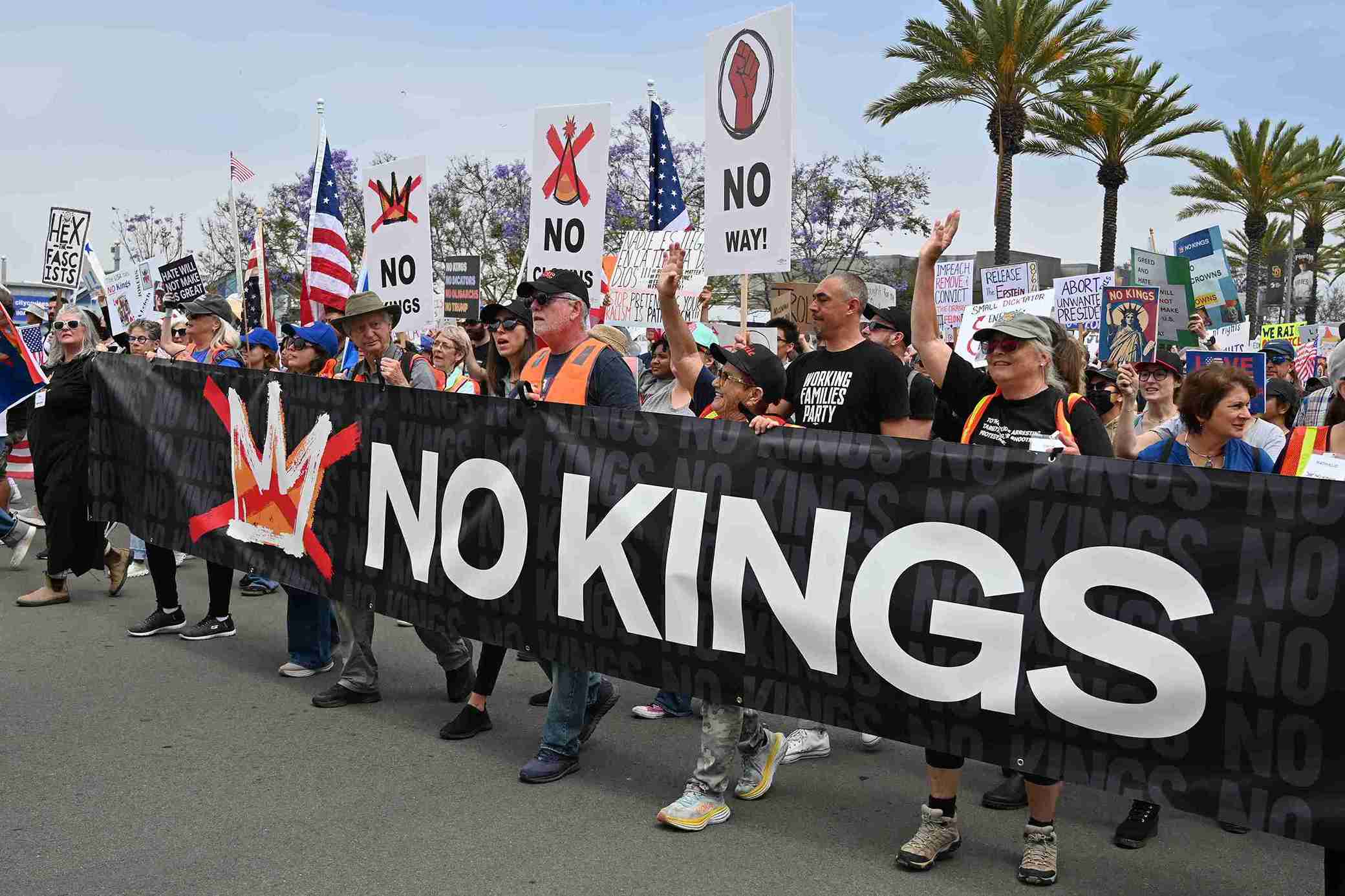 ABD'nin dört bir yanında, yüzlerce şehirde halk sokaklara çıkarak mevcut yönetimin politikalarına tepki gösterdi. Özellikle Trump yönetiminin göçmen politikaları, federal harcamalardaki kesintiler ve Gazze’deki krize yönelik tutumu sert biçimde protesto edildi. "Demokrasinin yanında duruyoruz", "Tarih bizi izliyor", "Krallara hayır", "İhanetin bedeli hesap sorulmadan kapanmaz" gibi dövizler taşıyan göstericiler, Chicago, New York, Atlanta ve San Francisco başta olmak üzere birçok kentte yürüyüşler düzenledi.