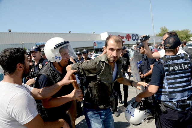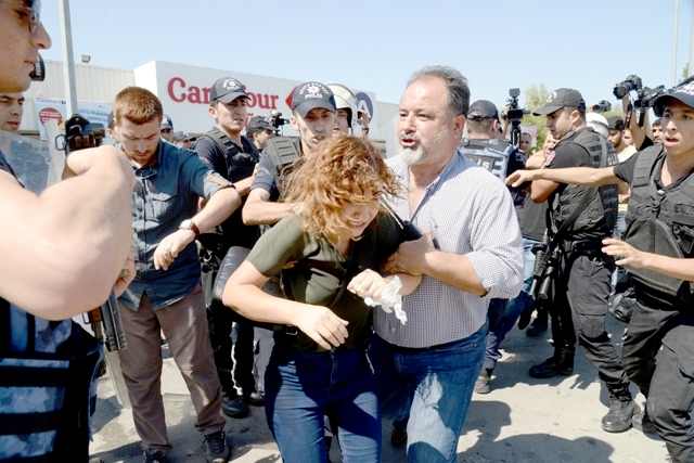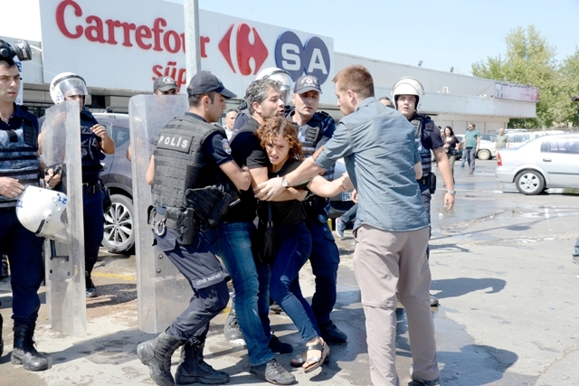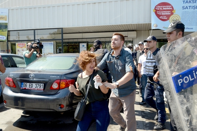 Atılan gaz ve tazyikli su nedeniyle bazı öğretmenler markete sığındı. Marketi abluka altına alan polis, içeri girip tüm Eğitim-Sen üyelerini gözaltına aldı. Polisin sert müdahalesi ile karşılaşan onlarca öğretmen apar topar gözaltına alındı.