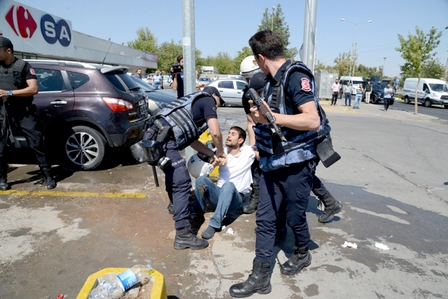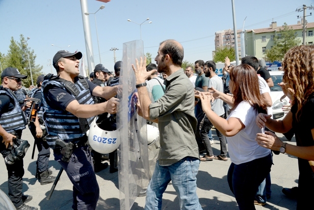 Diyarbakır’da 4 bin 313 öğretmenin açığa almasına karşı Diyarbakır İl Milli Eğitim Müdürlüğü önünde açıklama yapmak isteyen Eğitim-Sen üyelerine polis müdahale etti. Müdahalede onlarca öğretmen gözaltına alındı.