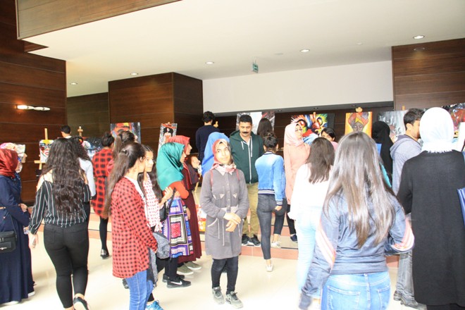 DÜ Kültür ve Kongre Merkezi fuaye alanında düzenlenen sanat eserleri sergisinde seramik, yağlı boya, kare kalem, üç boyutlu ve ahşap eserler sergilendi.