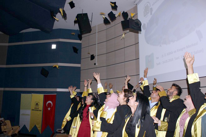 İstiklal Marşı ve saygı duruşunun ardından Adalet MYO’nun tanıtım filmi gösterisi ile başlayan mezuniyet törenin açılış konuşmasını MYO Müdürü Dr. Ömer Ergün mezuniyet sevincine ortak olan ve kendilerini yalnız bırakmayan tüm davetlilere teşekkür ettiğini dile getirdi. Ergün “2017-2018 Eğitim-Öğretim yılını geride bırakmak üzereyiz, böylesine bir sevinci yaşamak siz öğrencilerimizin en tabi hakkıdır. Geçtiğimiz yıl olduğu gibi 2017-2018 eğitim ve öğretim yılı da verimli dolu" dedi.