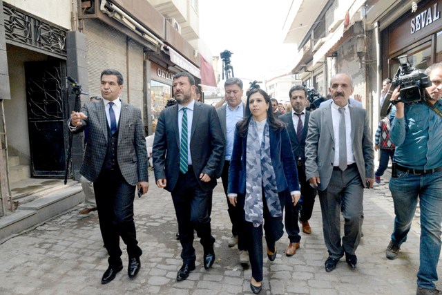Cumhuriyet Halk Partisi (CHP) Genel Başkan Yardımcısı Veli Ağbaba, Ankara milletvekilleri Murat Emir, Necati Yılmaz, İstanbul milletvekilleri Gülay Yedekçi, Didem Engin, Yüksek Disiplin Kurulu Üyesi Saniye Barut ile CHP Diyarbakır İl Başkanı Mehmet Sayın, bir grup partili eşliğinde dün Diyarbakır’da bir dizi temas ve incelemelerde bulundu. Ağbaba ve beraberindekiler ilk olarak Diyarbakır Valisi Hüseyin Aksoy tarafından karşılandı. Basın mensuplarının alınmadığı görüşmede, Aksoy, Sur’da yapılan çalışmalar hakkında Ağbaba ve beraberindekilere bilgi verdi.