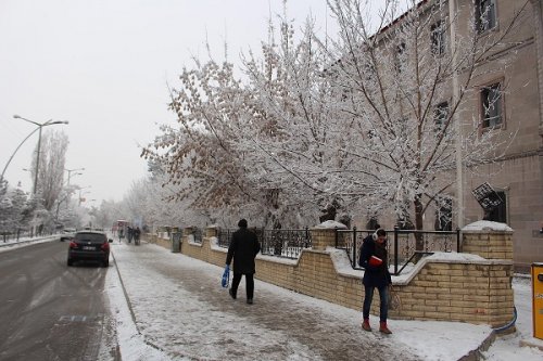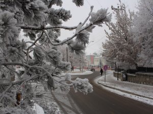 Ağrı’da havaların soğumasıyla ağaçların kırağı ve pus tutmasıyla birlikte kent merkezinde güzel manzaralar oluştu.