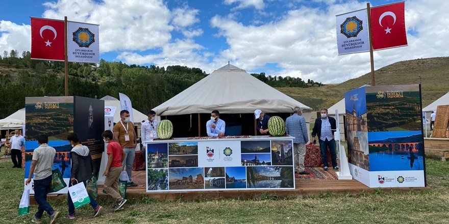 Diyarbakır Büyükşehir Belediyesi, Kültürel kimliğiyle, yalnız Türkiye’nin değil, tüm dünyanın da en önemli kentlerinden biri sayılan, 12 bin yılla aşkın kesintisiz kent yaşamı ile 33 medeniyete ev sahipsizliği yapan Diyarbakır tarihini Ahlat Otağında açtığı stantla tanıtıyor. Kentin sayısız eserlerinin başında gelen ve UNESCO Dünya Kültür Mirası Listesi’nde yer alan Diyarbakır surlarının tarih içindeki yaşanmışlıkları fotoğraflar ve belgelerle ziyaretçilere sunan Büyükşehir Belediyesi, irilikleriyle dünyaca meşhur ve Türk Patent Kurumu tarafından Diyarbakır’da tescillenen 8 üründen biri olan Diyarbakır karpuzlarını da ziyaretçilerle buluşturuyor.