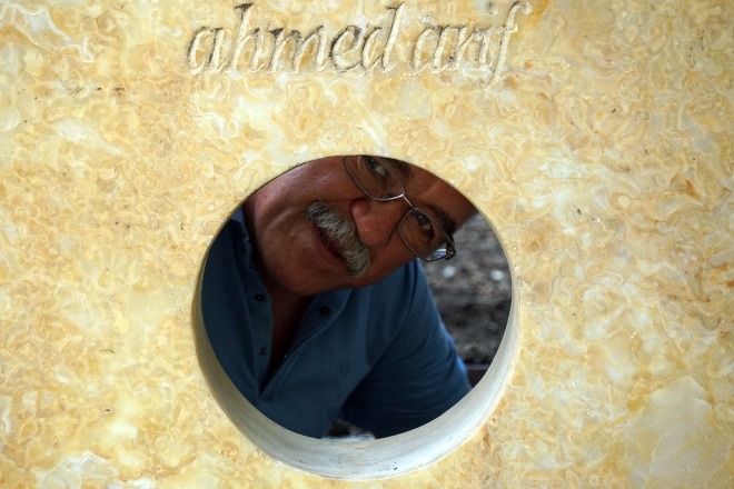 Vardık asri mezarlığın kapısına sorduk görevliye Ahmed Arif’in mezarı nerdedir diye! Elindeki telefona ismi girdi. Sonra mezarlık haritası gibi bir levhanın önüne götürdü bizi. Başladı tarife. Ya hu üstadım yanlış bir mezara gitmeyelim hele bi daha bak şu isme deyince!