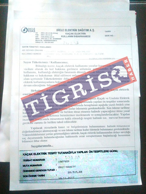 Bu arada DEDAŞ’ın Bismil adliyesinde görev yapan bir hakime de kaçak elektrik kullandığı gerekçesiyle para cezası kestiği, hakimin dava açması üzerine DEDAŞ’ın daha sonra bu cezayı geri çektiği belirtildi.