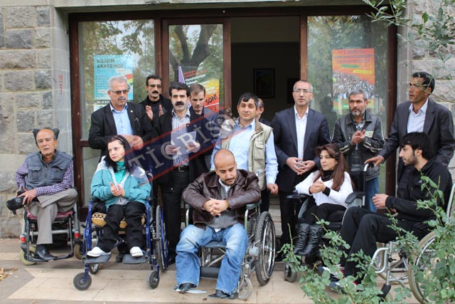 Nusaybin-Qamişlo arasındaki örülen "utanç duvarı"nın inşaatını protesto etmek amacıyla mayınlı alanda, önce açlık grevi eylemine başlayan daha sonra bu eylemi ölüm oruçuna çeviren Nusaybin Belediye Başkanı Ayşe Gökkan’a destek vermek amacıyla Diyarbakır Büyükşehir Belediyesi Sümerpark Ortak Yaşam Alanı, Yerel Gündem 21 Kent Konseyi önünde bir araya gelen Amed Engelliler Meclisi Üyeleri basın açılaması gerçekleştirdi.