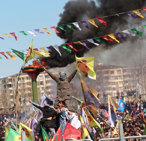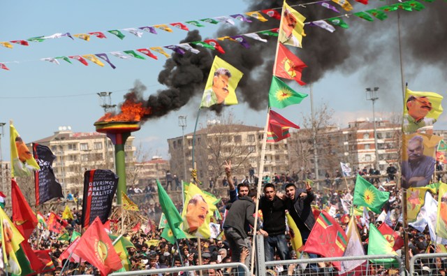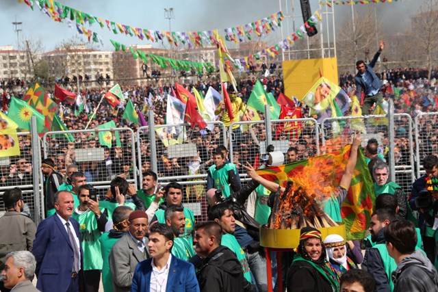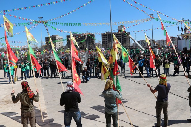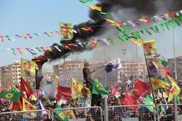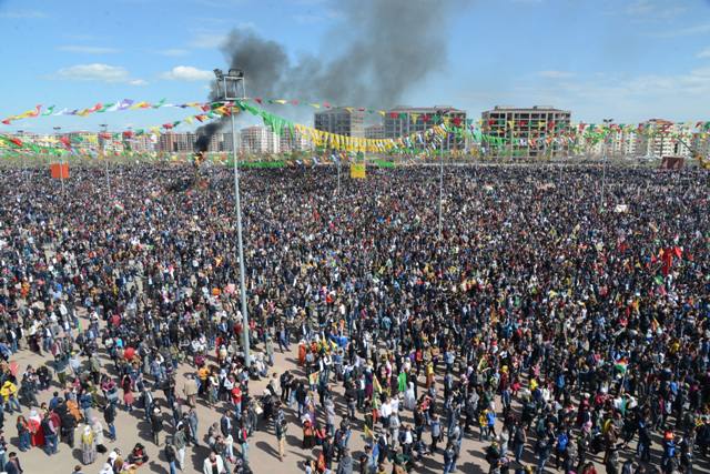 Diyarbakır'da DTK’nın düzenlediği Newroz etkinliği yoğun güvenlik önlemleri altında kutlandı. HDP Eş Başkanı Selahattin Demirtaş, çözüm sürecinin yeniden başlamasını isteyerek, "Dolmabahçe mutabakatındaki çözüm ruhuna bağlıyız. Newroz'u fırsata dönüştürmek istiyoruz" dedi. HDP Milletvekili Sırrı Süreyya Önder ise, “Evladının yolunu gözleyen Türk, Kürt, Arap, Ermeni bütün annelere burada taahhüt ediyorum ki, çağrımıza cevap verilirse 1 hafta içerisinde barışı sağlarız. 8. gün olursa beni Diyarbakır Meydanı'ndan çarmıha gerin. Ah dersem benden alçağı yoktur. Yaşanan olaylardan dolayı Kürt evine giremiyor, Türk evinden çıkamıyor” diye konuştu.