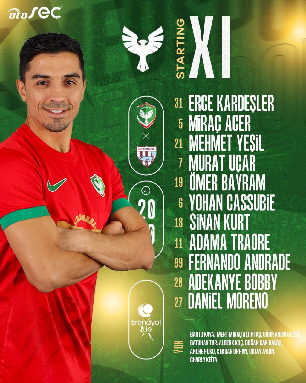 Amedspor: Erce, Miraç Acer, Mehmet Yeşil, Murat Uçar, Ömer Bayram, Cassubie, Sinan Kurt, Traore, Fernando Andrade, Bobby Adekanye, Daniel Moreno