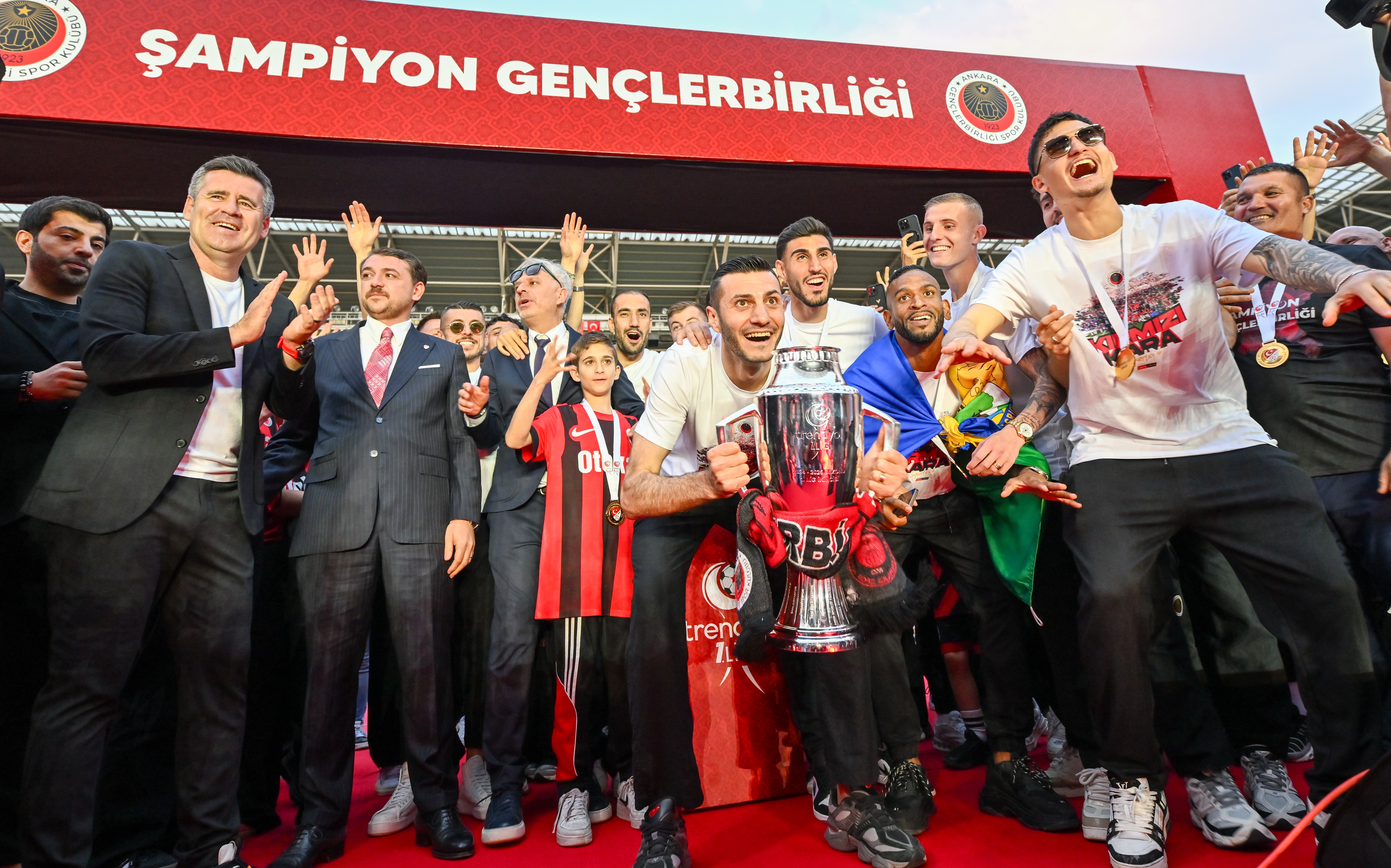 Başkent temsilcisi Gençlerbirliği, Eryaman Stadyumu’nda düzenlenen törenle Süper Lig’e dönüşünü kutladı. Taraftarının önünde büyük sevinç yaşayan kırmızı-siyahlılar, 4 yıl sonra yeniden Süper Lig’e çıkmanın gururunu yaşadı. Kupa ve madalyalarını, TFF Futbol Altyapı ve Gençlik Projelerinden Sorumlu Yönetim Kurulu Üyesi Cengiz Gökay ile Teknoloji ve Kurumsal İletişimden Sorumlu Yönetim Kurulu Üyesi Bilal Aslan takdim etti.