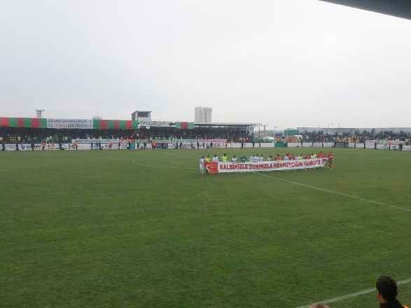 Amedsporlu ve Tuzlaspor'lu futbolcular sahaya "Kalbimizle Duamızla Mehmetçiğin Yanındayız" pankartı ile çıktı.