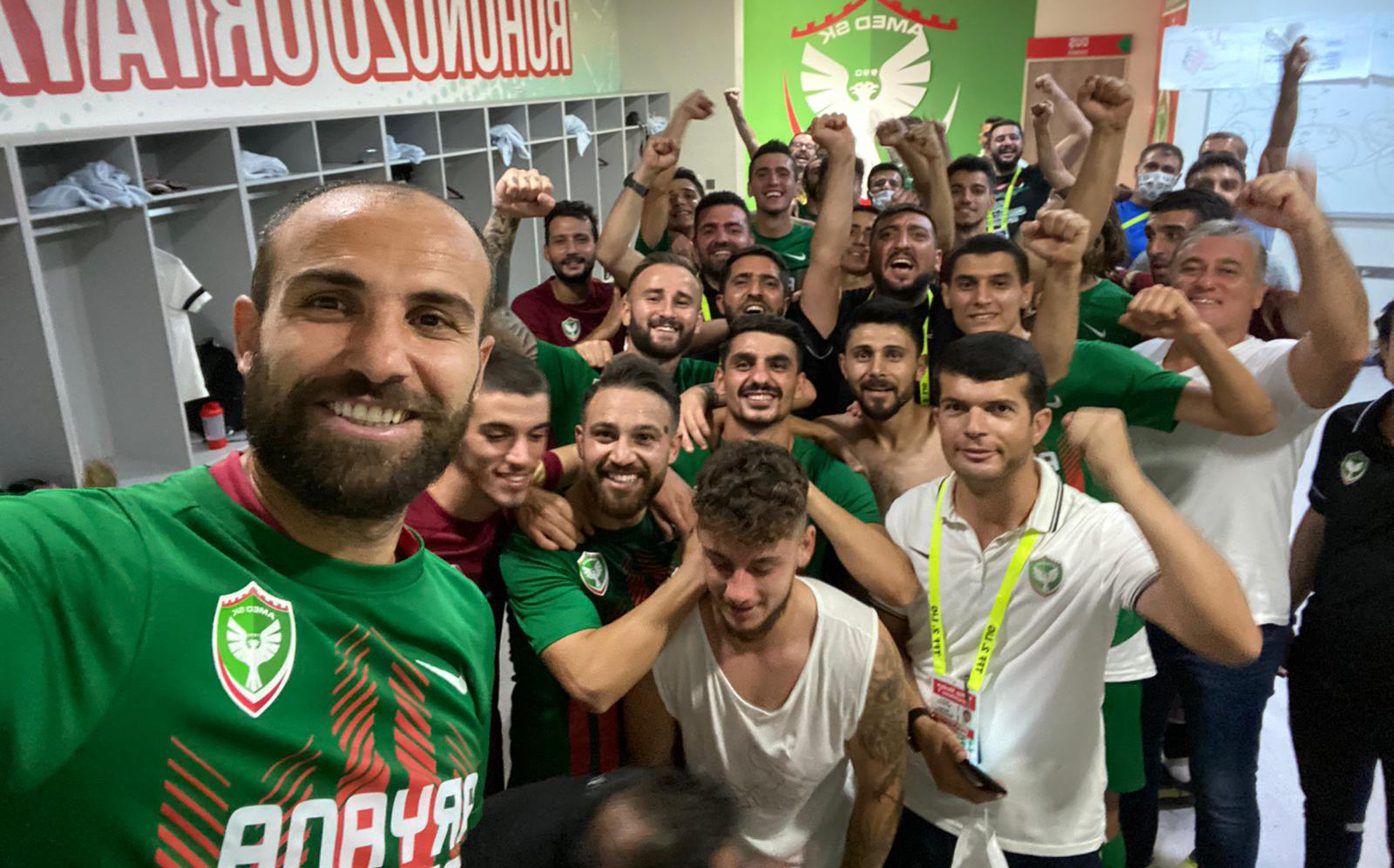Karşılaşmanın ardından Amedspor'lu oyuncular soyunma odasında galibiyet selfisi çekti.