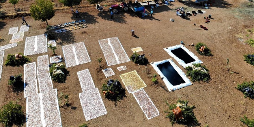 TİGRİS HABER - Urfa’da bağ bozumu telaşı yaşanıyor. Türkiye'nin önemli tarım kentlerinden Şanlıurfa'da bağ bozumunda toplanan üzümler, asırlardır geleneksel yöntemlerle pekmez, pestil, kesme ve ceviz sucuğuna dönüştürülüp, özellikle kış aylarında tüketiliyor. Kentte sonbaharın gelmesiyle bağcılığın yaygın olarak yapıldığı Hilvan ilçesine bağlı Hasenik Mahallesinde sabah erken toplanan üzümler, şıra alanına taşınıyor. Çuvallara doldurulduktan sonra taş havuzlarda yöreye has beyaz toprakla birlikte ezilen üzümler şıra haline getiriliyor. Büyük bakır kazanlarda ve odun ateşinde saatlerce kaynatılan şıra günlerce çeşitli işlemlerden geçirilerek pekmez, bastık, sucuk ve kesme haline geliyor. Tarlada çalışan kadınlar, 30 ile 120 TL arasında değişen fiyatlarla alıcı bulan ürünleri, yetiştiremeye çalıştıklarını söyledi.