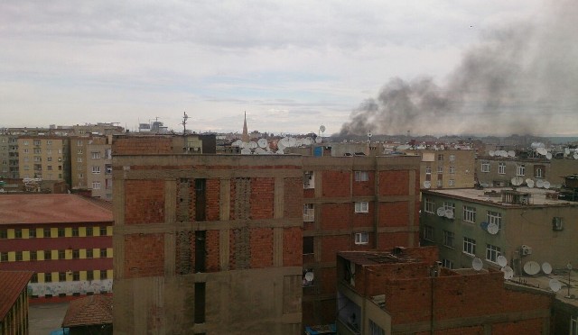 Çatışmaların yoğunlaştığı Kaynartepe Mahallesi ile Gürsel ve Cemiloğlu Caddesi bölgesinde yoğun dumanlar yükseliyor. Bölgedeki çatışmalar da yer yer devam ediyor. (İHA)