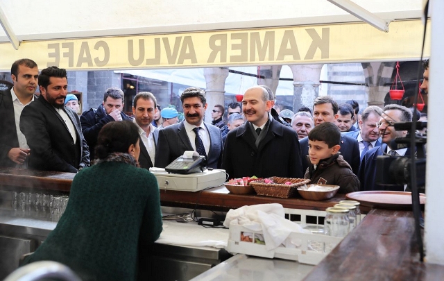 Bakan Soylu ve beraberindekiler daha sonra Sur İlçesi’ne geçerek esnafı ziyaret etti. Bakan Soylu’nun gelişi öncesi kentte geniş güvenlik önlemleri alındı.