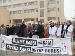 Kadın, çocuk, yaşlı sivil demeden bu halkı katlediyorsunuz. Bu ülkenin emekçilerini, sağlıkçılarını hedef göstererek bu savaş konsepti çerçevesinde katletmeye devam ediyorsunuz. Geçmişte eğitimci arkadaşlarımıza yönelik katliamlarda olduğu gibi, bugün de sağlıkçı arkadaşlarımızın, bilerek, hedef gözetilerek katledilmesini kabul etmiyor, protesto ediyoruz. Hele hele kendi mahallesinde, kendi sokağında yaşlı bir kadına müdahale etmek için Cizre’de sağlıkçı Aziz… arkadaşımızın katledilmesini kınıyor ve protesto ediyoruz. Ayrıca bugün burada ‘Beyaz Forumlar’ adı altında mücadele eden sağlıkçı arkadaşlarımızın yanında olduğumuzu ve mücadelelerini desteklediğimiz ifade ediyorum. Bu ülkenin bütün ezilenleri, muhalifleri, bütün halkları bir arada yaşamak için, eşitlik ve özgürlük talebiyle dün olduğu gibi bugün de yarın da mücadele etmeye devam edeceklerdir. Savaşla, baskıyla, gözaltı ve tutuklamalarla dün hiçbir kesimi engelleyemediğiniz gibi bugün de yarın da hiçbir kesimi engelleyemezsiniz. Burada bir kez daha bu tarihsel sorunun, inkâr ve imha ile çözülemeyeceğini hükümete söylüyoruz. Er geç, dün olduğu gibi çözüm sürecine, diyalog ve müzakere masasına dönülmek zorundadır. Çünkü başka bir yöntem yoktur. Kendi geleceğinizi ve iktidarınızı daha da kurumsallaştırmak için bu savaştan ısrar ederseniz, bu ülkenin insanları, halkları arasında derin uçurumlar yaratmaya devam edeceksiniz. Bütün bunların sorumlusu siz olacaksınız”