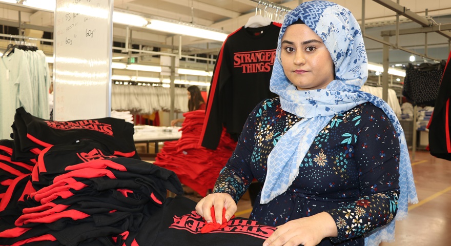 İşçi Zeynep İlkcan, tekstil atölyelerinin genç kızlara istihdam sağladığını belirterek, kazandığı parayla hem çeyizini hazırladığını hem de aile bütçesine katkı sunduğunu belirtti.