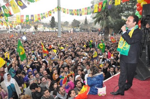 BDP'nin Urfa'da düzenlediği "Öz yönetimle özgür kimliğe" mitinginde konuşan Urfa Büyükbehir Belediye Eş Başkan aday Osman Baydemir, Urfa'ya aday olmanın büyük bir onur olduğunu söyledi. Herkesin yaratıcı rabbe karşı sorumlu olduğunu kaydeden Baydemir, yapılmayanlardan kaynaklı da insanın sorumlu olduğunu belirtti. Sık sık "Urfa seninle gurur duyuyor" sloganı atan 10 bini aşkın yurttaşa seslenen Baydemir, "İbrahim kula kul olmama mücadelesi verdi. Bu özgürlük mücadelesidir. Zengin olmak isteyenler siyasete bulaşmasın. Siyaset kutularda para saklama alanı değil, hizmet etme alanıdır" dedi.