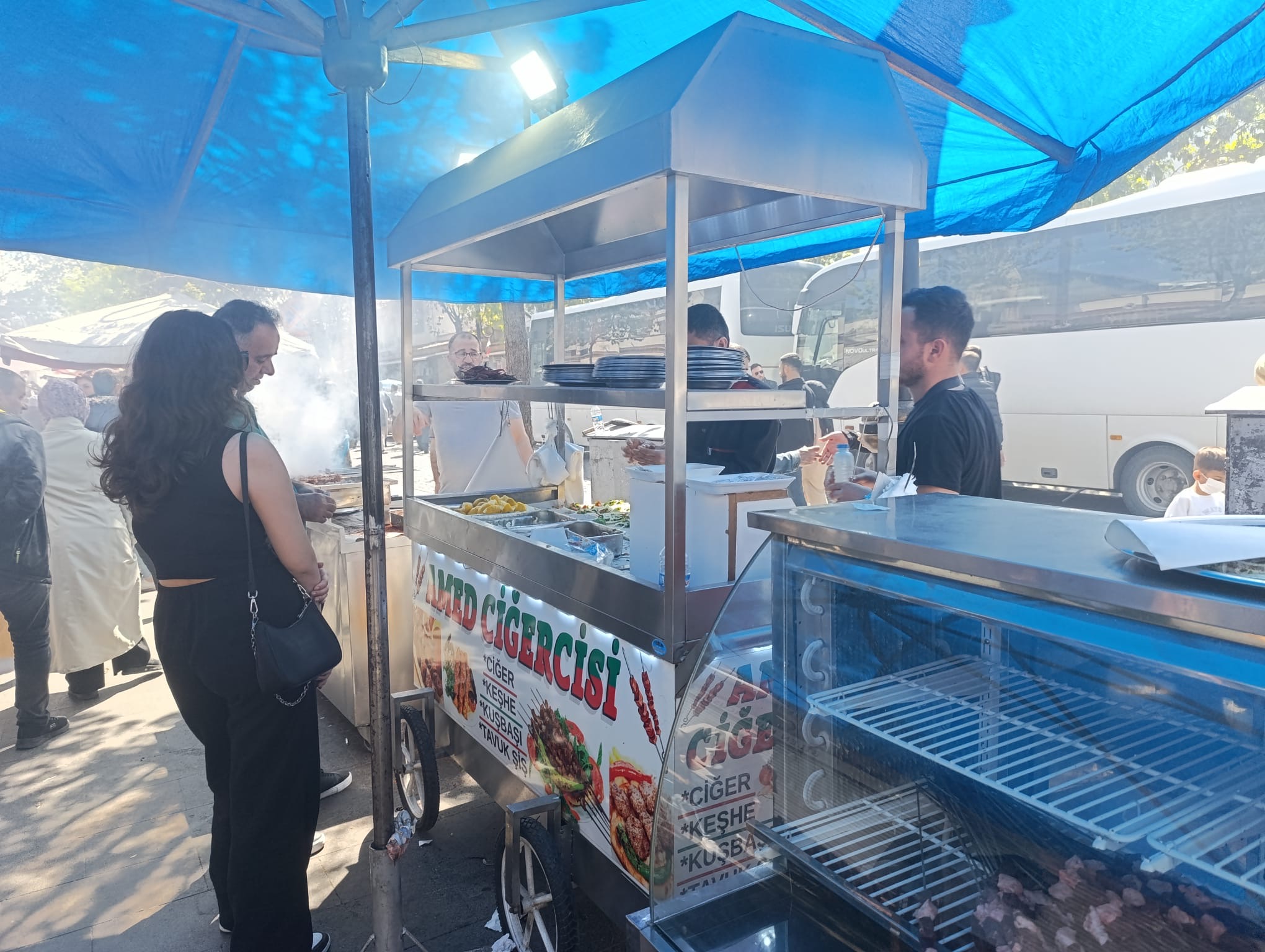İlk kez ciğer tatmak isteyen turistlerin uğrak yeri olan ciğer tezgahlarında uzun kuyruklar oluştu.