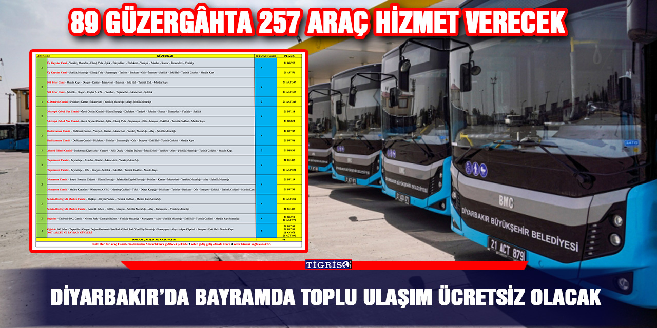 Diyarbakır’da bayramda toplu ulaşım ücretsiz olacak