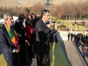 Diyarbakır- Sabah saatlerinde Hazro'da gerçekleşen tanıtımın ardından Silvan'a hareket eden onlarca araçlık konvoyda bulunan BDP Diyarbakır Büyükşehir Belediyesi Eş Başkan Adayı Fırat Anlı, BDP Diyarbakır İl Eş Başkanı Zübeyde Zümrüt, Kayapınar Belediye Eş Başkan Adayı Mehmet Ali Aydın, Lice Belediye Eş Başkan Adayı Rezan Zuğurli ile merkez Bağlar, Sur ve Yenişehir ilçe belediye eş başkan adayları Silvan girişinde yine onlarca araçlık konvoy oluşturan yüzlerce yurttaş tarafından karşılandı. İlçe girişindeki karşılama sonrası yine konvoy halinde kent merkezinde turlayan seçim konvoyu, daha sonra yurttaşların adaylarını beklediği Nevin Parkı Meydanı'na geldi. Alanın BDP bayrakları ve sarı, kırmızı ve yeşil flamalar ile süslendiği ve "Öcalan'a özgürlük Kürtlere statü" pankartının asıldığı görüldü.