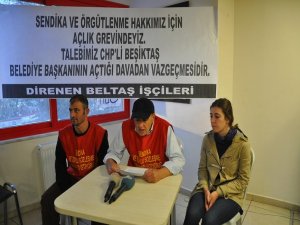İşçiler adına açıklama yapan Genel-İş Sendikası üyesi Cemalettin Demirel, 2 yıl önce Genel-İş Sendikası'nda örgütlendikleri için Beşiktaş Belediyesi'nin kendilerini işten çıkarttığını söyleyerek, "Belediyenin amacı sendikal örgütlenmemizi yok etmektir" dedi. Belediyenin CHP yöneticilerini ve çalışanlarını BELTAŞ çalışanı yaparak çoğunluğu sağlamaya çalıştığını belirten Demirel, "Biz örgütlenmemizi büyüterek bu engeli de aştık. Şimdi de belediyenin sendikaya açtığı davayla boğuşuyoruz. Sendikalar Kanunu nedeniyle sendikamız aleyhine dava açıldığı için yetkilerimizi kullanamıyoruz" diye belirtti. AKP'nin de bir yandan işçinin kıdem tazminatını ortadan kaldırarak taşeron çalışmasını genel hale getirmek istediğini belirten Demirel, "CHP'li Beşiktaş Belediyesi ise işçileri örgütsüzleştirmek için sendikaları yetkisiz kılmak için şeytanın aklına gelmeyecek şeyler yapıyor" dedi.
