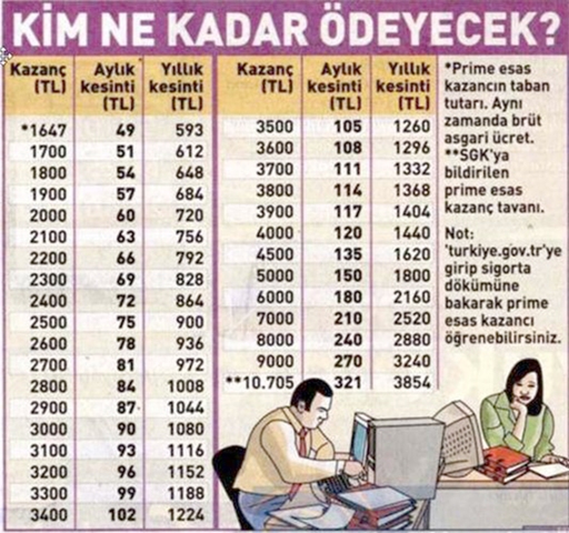 Aylık kesinti 'prime esas kazanca' göre yapacak. Bu ne demek? Sizin SGK'ya bildirilen kazancınız demek. Bunun içinde ücret, prim, ikramiye gibi ödemeler ile özel sağlık sigortasına ödenen tutarlar yer alıyor. Asgari ücretle çalışıyorsanız, maaşınızdan aylık 49 lira, yıllık 593 lira kesilecek. Kazanç arttıkça kesinti de artacak. 45 yaş altı 13 milyon çalışanın Bireysel Emeklilik Sistemi'ne girmesi 1 Ocak itibarıyla zorunlu olacak. Her ay 49-321 lira arasında kesinti b yapılacak. Peki kimin maaşından ne kadar eksilecek? işte cevabı...