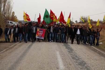 DİYARBAKIR (TİGRİS HABER) - BDP Diyarbakır İl Örgütü tarafından, PKK’nin 35. kuruluş yıldönümü dolayısıyla Lice’nin Fis Köyü’nde düzenlenen şölene, Bölgenin bir çok yerinden yurttaşlar alana akın ediyor. Sabahın erken saatlerinde BDP Diyarbakır il ve ilçe binalarının önünde bir araya gelen yurttaşlar, yüzlerce araçla konvoylar oluşturup Lice’nin Fis Köyü’ne doğru yola çıktı. PKK’nin kuruluşunu ilan ettiği ev, PKK Lideri Abdullah Öcalan ve PKK öncü kadronun posterleriyle donatıldı. PKK’nin kuruluşunu ilan ettiği ev, yurttaşlar tarafından yoğun ilgiyle karşılandı. Evin önünde hatıra fotoğrafları çektiren yurttaşlar, göz yaşlarına hakim olamadı. Şölenin yapılacağı alanda kurulan platforma da, PKK Lideri Abdullah Öcalan ve PKK öncü kadronun dev posterleri asıldı. Diyarbakır- Bingöl yolu üzerinde bir çok noktada güvenlik kontrolleri yapılırken, şölenin yapılacağı alanın üzerinde ise helikopterlerin alçak uçuş yapması dikkat çekti.