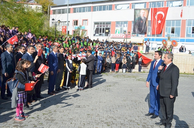 Hükümet konağı önünde bulunan Atatürk Anıtına çelenk sunma ile başlayan tören, saygı duruşu ve İstiklal Marşı’nın okunması ile devam etti. Ardından Muradiye Stadı’nda düzenlenen etkinlikte konuşan Kaymakam Mehmet Fatih Çelikel, Gazi Mustafa Kemali Atatürk’ün ‘gençler cumhuriyeti biz kurduk, onu koruyacak ve yükseltecek olan sizlersiniz’ sözünü hatırlatarak “Atatürk’ün emaneti olan Türkiye Cumhuriyetine canınız gibi sahip çıkıp, koruyacağınıza ve yüceltip geliştirmek için de sürekli çaba harcayacağınıza içtenlikle inanıyorum. Milli birlik ve beraberliğimize yönelik saldırıların arttığı bir dönemin içerisindeyiz. Bu saldırıları yapan iç ve dış güçlerin cumhuriyetimizin nasıl kurulduğunu, bu toprakların her karışının ecdat kanı ile sulandığını unuttukları görülmektedir. Eğer geçmişimize zafer ve şanla dolu tarihimize biraz bakmış olsalardı, bütün bu saldırıların beyhude olduğunu zaten anlarlardı. Bu dönemde millet olarak üzerimize düşen, bizi bir birimize düşürmeye çalışan bu zihniyete karşı aklıselim hareket etmek ve birlik ve beraberliğimize her zamankinden daha fazla sahip çıkmaktır. Millet olarak bize yakışan bu ayrımcı zihniyet karşısında bir birimize sıkı sıkıya bağlanmaktır. Bu bağlamda Türkiye Cumhuriyetinin 93 yılını bu duygularla içtenlikle kutluyor, cumhuriyet coşkusunun yaşamınız boyunca sürmesini diliyor ve hepinizi sevgi saygı ve en kalbi duygularımla selamlıyorum” dedi. (İHA)