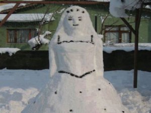 Okulların tatil olmasını fırsat bilen çocuklar sokakta kartopu oynayıp kardan adam yaparken bir güzellik salonu çalışanlarının işyerlerinin önüne yaptığı kardan gelin vatandaşların ilgisini çekti.Güzellik salonu işleten Akif Tekin 4 personeli ile ilde dün başlayan ve bugün de etkisini sürdüren kar yağışını fırsat bilerek işyerinin önüne kardan gelin yaptı.Başına peruk ve duvak takılan kardan gelin yoldan geçen vatandaşların ilgi odağı oldu. Bazı vatandaşlar kardan gelin ile hatıra fotoğraf çektirdi.