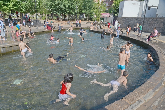 Kent yakınlarındaki Karacadağ eteklerinden çıkıp Çiftkapı surlarının altından kente akan ve bir zamanlar balıkların da olduğu Anzele çocuklarla dolup taşıyor. Tehlikeye aldırış etmeyen çocuklar, yüksekten suya atladıktan sonra betona uzanıp güneşlenmenin keyfini çıkardı. Kavurucu sıcaktan etkilenen bazı vatandaşlar, parklardaki gölgelik alana hücum etti. Güneşin etkisinden bir nebze olsun kurtulmak isteyen vatandaşlar, gölgelik alanda uzanıp dinlenmeyi tercih etti.