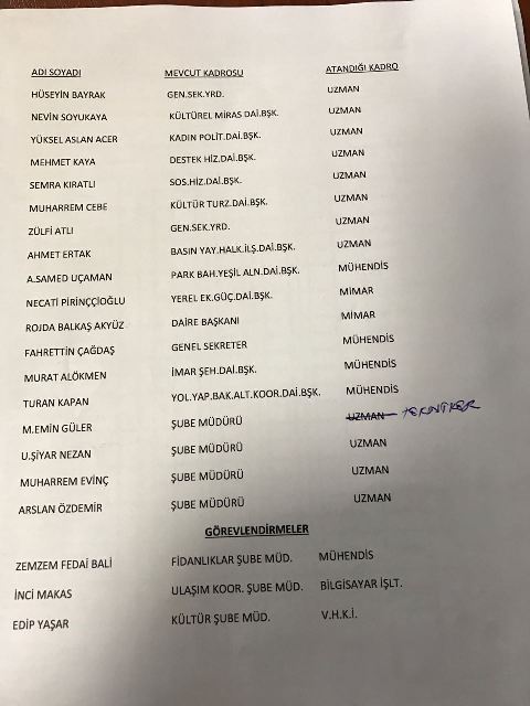 İşte görevden ve kadrosu alınan Daire başkanlarının isimleri;