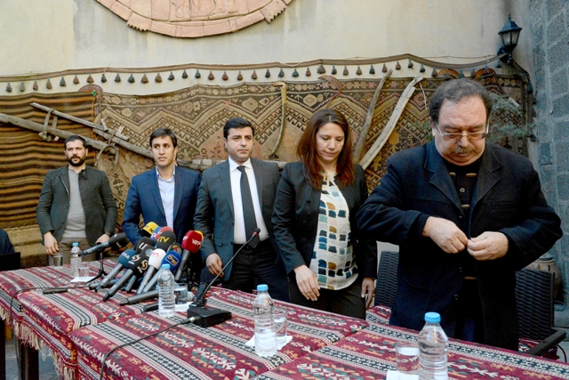 Halkların Demokrasi Partisi (HDP) Eş Genel Başkanı Selahattin Demirtaş, beraberinde DBP Eş Genel Başkanı Kamuran Yüksek, ile DTK Eş Başkanları Hatip Dicle ve Selma Irmak ile Diyarbakır Sur İlçesi’nde çatışmalardan 200 metre uzakta bulunan Dicle Fırat Kültür Merkezi’nde patlama sesleri altında basın açıklaması yaptı.