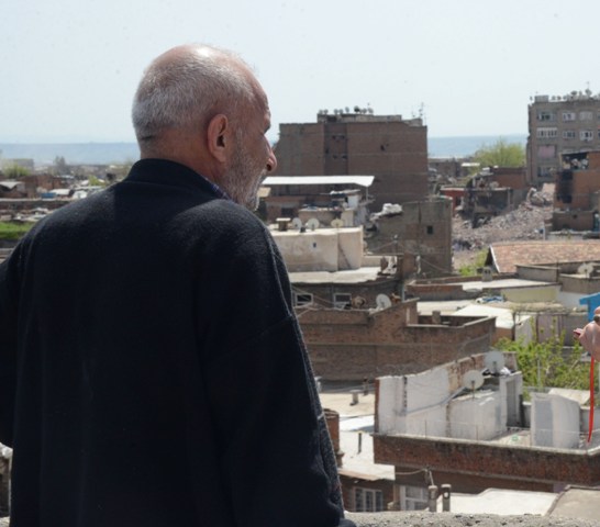 Sur’da Kurşunlu cami arkasında oturan 60 yaşındaki Mehmet amca çatışmalar sırasında ağır hasar gören evini görmek için Sur’un yasaksız sokaklarında dolaşıyor. Bizde Mehmet amcayı Sur’da gezerken bulduk. Soyadının yazılmaması şartıyla bizimle konuşmaya başlıyor. Mehmet amca doğma büyüme Surlu. Surdaki kısmı yasağın kalkmasından sonra Mehmet amca yüksek binalara çıkarak evinin ne hale geldiğini öğrenmeye çalışıyor. Birlikte bir binanın çatısına çıkıyoruz. Eliyle, ağır hasar gören evini işaret ediyor. İşaret sonrası Mehmet amca o yürek yakan hikayesini anlatmaya başlıyor.