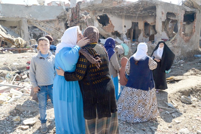 Son olarak ilçeden ayrılmadan HDP’li Faysal Sarıyıldız’ı görmeden geçmek istemedik. Kendiside arar aramaz hemen kabul etti. Kısa ve öz bir görüşme yaptık. Sarıyıldız, 2.5 aylık yasak sırasında İlçe’de her türlü hukuksuzluğun ve adaletsizliklerin yaşandığını, insanların diri diri yakıldığını dile getiriyor. İlçede görev yapan güvenlik güçlerinin 90’lı yıllarda görev yapan kişilerden oluştuğunu ve bunların ilçeyi suçlu, suçsuz ayrımı gözetmeksizin yakıp yıktığını belirtiyor. Sarıyıldız’ın konuşmalarındaki en şaşırtıcı kısım ise, askerlerin evlerde yaptığı bazı uygulamaları. Bu kısmı bizzat Sarıyıldız’ın ağzından veriyorum, “2.5 ayda tek bir canlı kalmadı. Günlerdir kuş sesi duymaya hasret kaldık. Bir çok evde kedilerin öldürülüp tavana asıldığın gördük. Yine askerler kadınlara ait iç çamaşırları çıkarıp üzerine yazı yazdıkları ve astıklarını duyduk. Bunlar çok iğrenç ve bir ordunun askerine yakışmayan hareketler. Bunlar hangi duygu ve öfke ile hareket emişler anlamak mümkün değil, ancak tek gerçek burada devlet kendi hukukunu ve anayasasına yüzlerce kez tecavüz ederek, ihlal etti”.