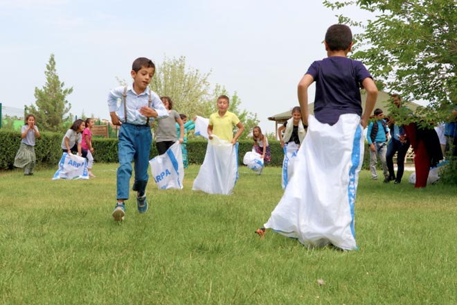 Terapi merkezindeki seanslara katılan öğrenciler, daha sonra piknik alanında gönüllerince eğleniyor.