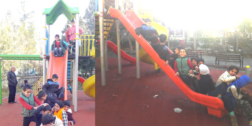 Diyarbakır’da parkları diğer illerdeki parklardan ayıran nokta ise; çocuk sayısının fazla olması, park sayısının az olması. Durum böyle olunca onlarca çocuğun minik parkta eğlenmeye çalışması objektiflerimize böyle yansıdı.