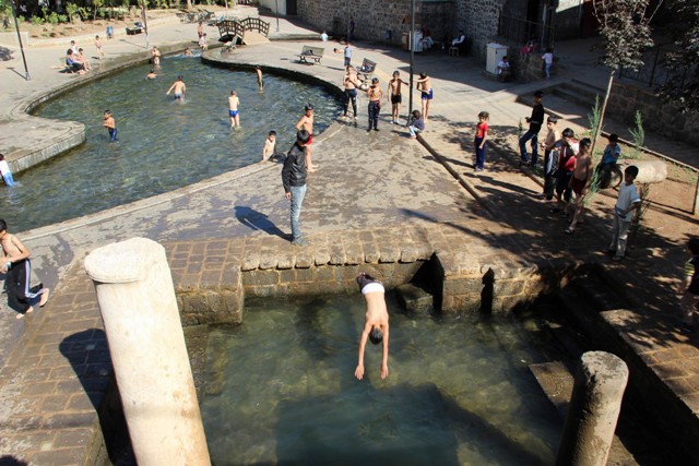 Henüz kavurucu sıcaklıkların başlamadığı ve hava sıcaklığının bugün 26 dereceyi gösterdiği Diyarbakır’da, çocuklar süs havuzu sezonunu açtı. Havaların ısınmaya başlamasını fırsat bilen çocuklar, soluğu süs havuzlarında aldı. Özellikle Sur ilçesi İskenderpaşa Mahallesi’ndeki Anzele Parkı’nda bulunan havuza akın eden çocuklar, renkli görüntüler de oluşturdu.
