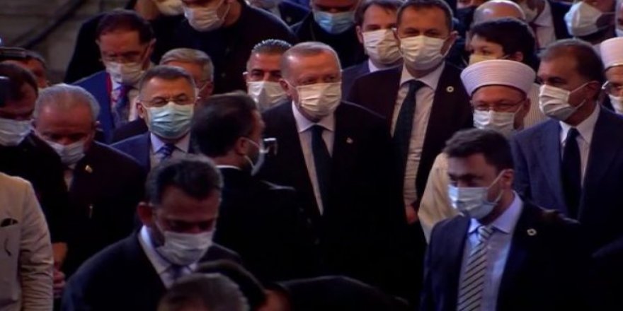Cumhurbaşkanı Erdoğan, saat 12.00 sıralarında Ayasofya Meydanı'na gelmesinin ardından camiye giriş yaptı.