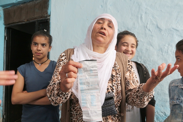 Dilber Keleş, “Ben kendim kiracıyım. Eşim 50 yaşındadır ve geçen sene İstanbul’a gitti iş için ve kulakları işitmiyor diye işe almadılar. Eşim inşaat işçisidir ve iş bulamadan tekrar eve geldi. 10 senedir bu evde oturuyorum ve evin tavanı çökmek üzere. Benim eşim işsiz ve ben kendim sinir hastasıyım, sürekli olarak ilaç kullanıyorum. Oğlum askerdedir ve o da hastadır. Tayyip Erdoğan 16 senedir iktidardadır ve hepimiz de ona oy verdik ama bize bir gün bir iş vermediler. Bizim kapımızı çalan, halimizi soran olmadı. Biz bu cezayı nasıl ödeyeceğiz, parayı nereden getireceğiz? Bize bu cezayı neden yazmışlar, bunu açıklasınlar. Kaçak kullanıldığına dair bir ispat varsa bunu söylesinler. Böyle bir tespit yoksa kafasına göre nasıl ceza yazıp gidebiliyorlar.”