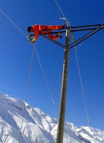 Diyarbakır - Dicle Elektrik Dağıtım Anonim Şirketi (DEDAŞ) ekipleri, bölgedeki karlı ve sarp dağlardan geçen hatlarda yaşanan arızaları, canları pahasına onarmaya çalışıyor.
