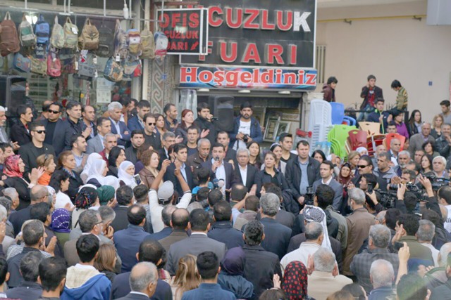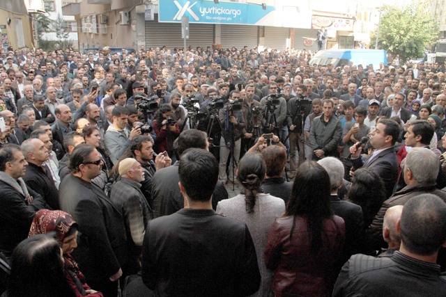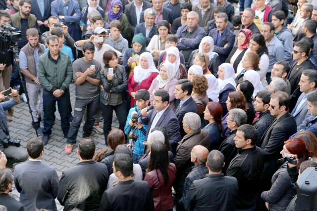 DBP binası önünde halka seslenen HDP Eş Genel Başkanı Selahattin Demirtaş'ın konuşması sık sık sloganlarla kesildi. Demirtaş'ın konuşmasından satırbaşları şöyle: