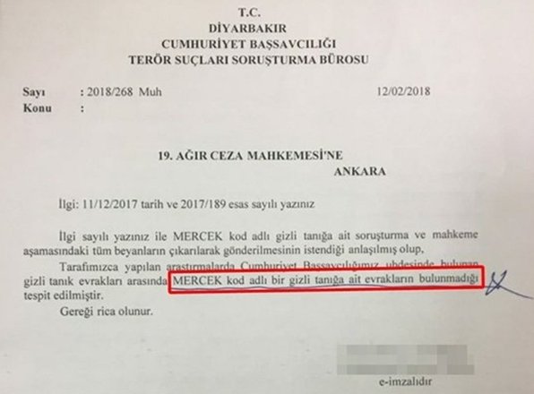 Ama yargılandığım mahkeme, MERCEK denen gizli tüm beyanlarını Diyarbakır Cumhuriyet Başsavcılığı’ndan isteyince gerçek ortaya çıktı. Beni tutuklatmak için bu sahte FETÖ delilini dosyama koyan aynı savcılık, bu defa da “böyle bir gizli tanık beyanı yok” diye cevap yazdı.